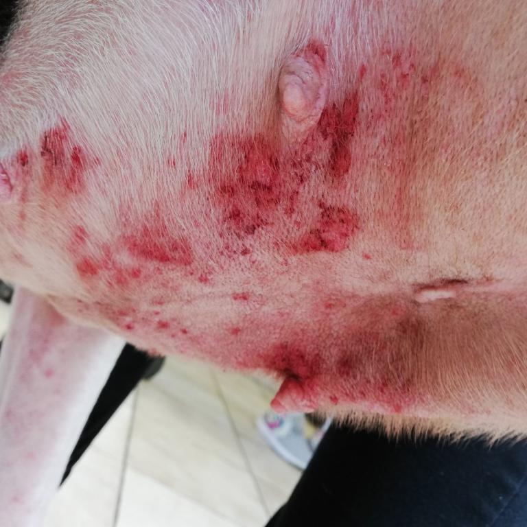 Im Anschluss der Befunderhebung wird Ihr Tier dermatologisch untersucht. Dazu gehören verschiedene Probeentnahmen. Es werden Haarproben und Hautgeschabsel genommen, Anfärbungen durchgeführt und im Anschluss mikroskopiert. Eventuell kommen weiter diagnostische Hilfsmittel wie die Woodsche Lampe oder das Ansetzen von Pilztests zur Anwendung.